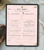 This minimalist journal for iPad Pro 12.9″ & 13″ offers guided layouts for reflective writing along with clean pages for free journaling and notes. Completely undated, it allows you to duplicate pages and shape a journaling routine that fits your pace. The soft Dahlia Series cover and light pink interiors create a calm, welcoming space, while the minimal design keeps distractions away. Delivered as a high-resolution PDF (2048 × 2732 px, 300 DPI), it works smoothly with GoodNotes, Notability, Freenotes, and Kilonotes.