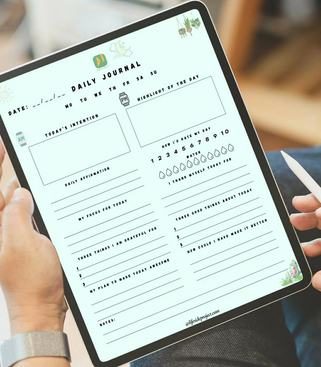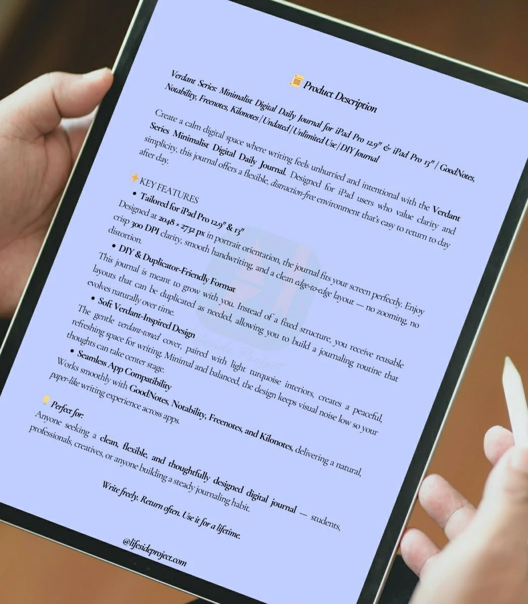 This minimalist digital journal is designed to create a calm, refreshing space for writing, reflection, and everyday clarity. Created specifically for iPad Pro 12.9″ and iPad Pro 13″, it offers a clean, distraction-free environment where journaling feels unhurried and easy to maintain.